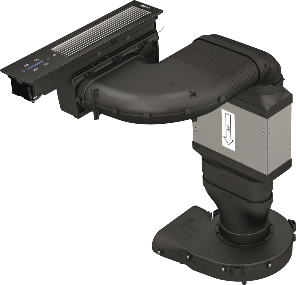 Встраиваемая вытяжка BORA CKASE2 с минималистичным дизайном устанавливается заподлицо со столешницей, создавая гармоничное решение для современной кухни. Интуитивное управление осуществляется с помощью вертикального ползунка - простым движением пальца вверх или вниз можно быстро настроить все основные параметры работы.
