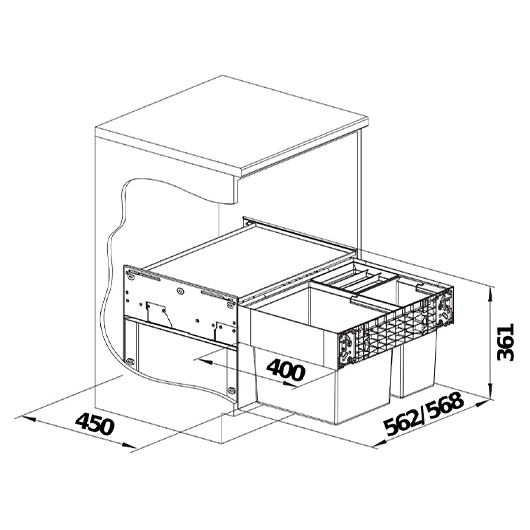 Система сортировки отходов SELECT II XL 60/3 от Blanco воплощает философию бескомпромиссного качества, инновационного дизайна и функциональности, превращая самое активное место на кухне в продуманный, эргономичный и эстетичный центр для приготовления пищи.